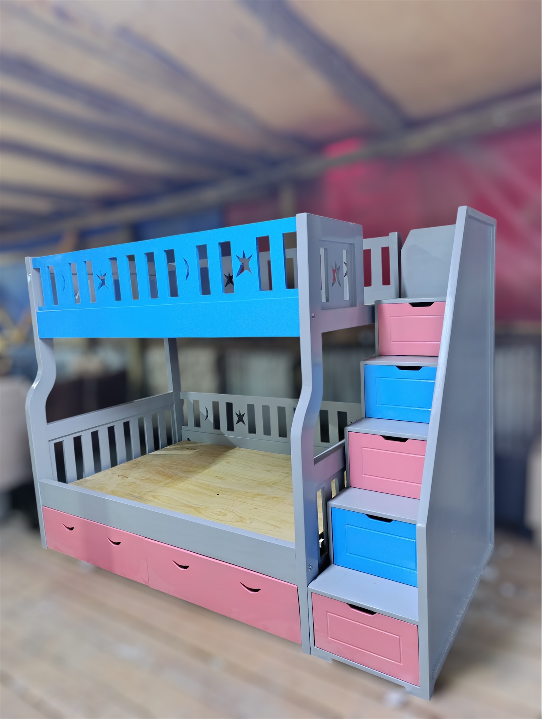 Maximize your space without compromising on style or comfort with our sturdy and modern double-decker bunk bed. Perfect for kids, teens, or guest rooms, this bunk bed features a durable wood, safety rails on the top bunk, and a convenient ladder for easy access. Ideal for small apartments or shared bedrooms, it’s a smart and stylish solution for any home.