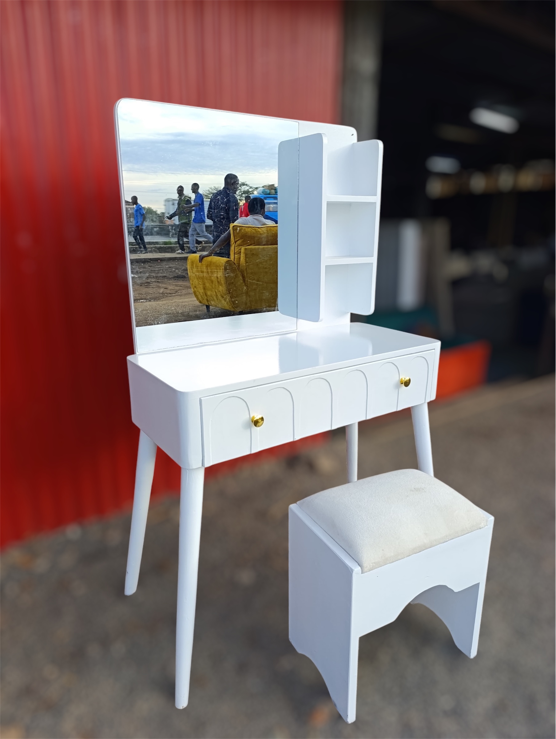Transform your space with this sleek dressing mirror paired with a comfortable stool. Perfect for your daily routine, it blends style and function, offering a chic touch while providing a practical spot for getting ready.